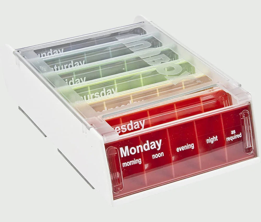 Det rekommenderas också att rengöra doseringslådan innan den fylls på med medicin eller byter mediciner!